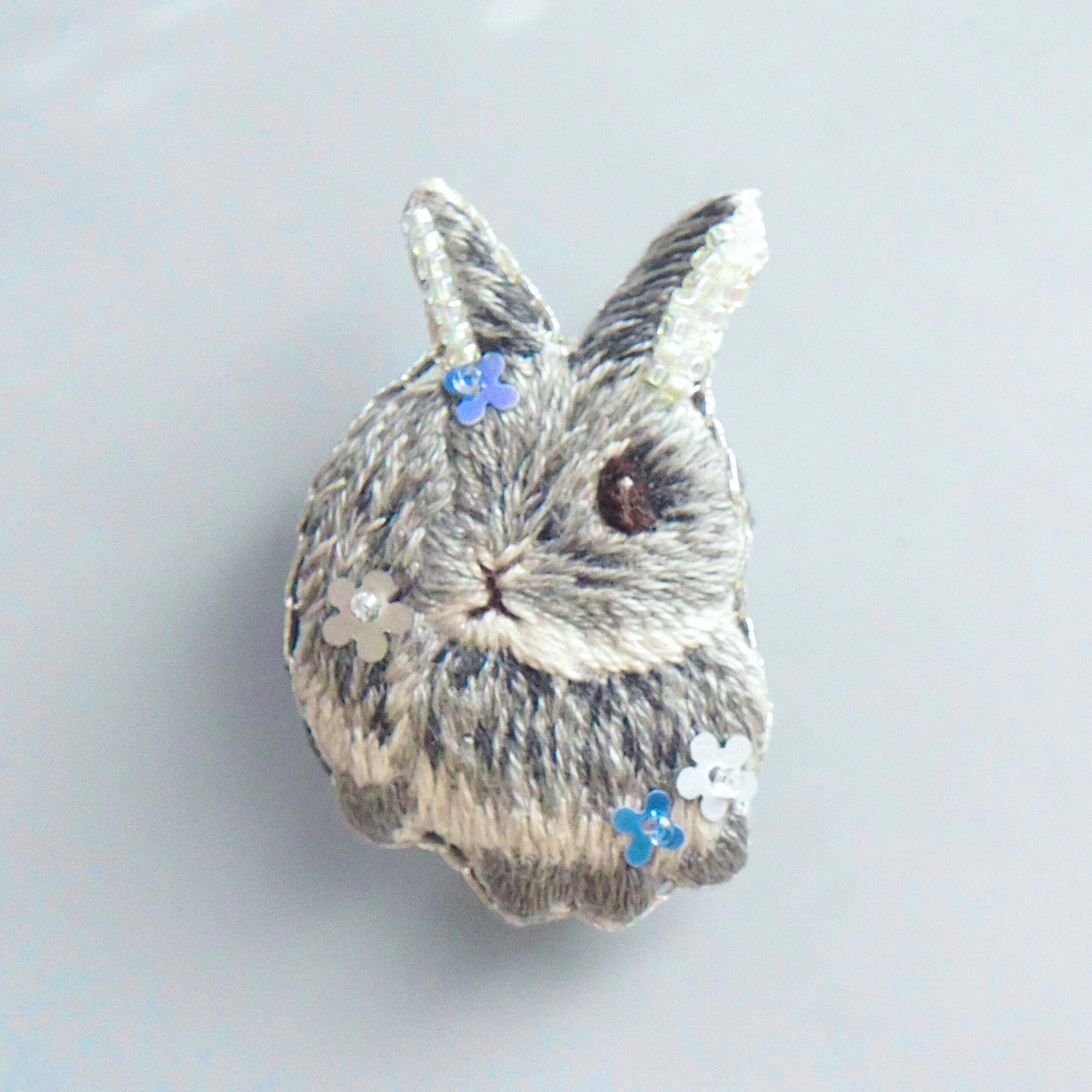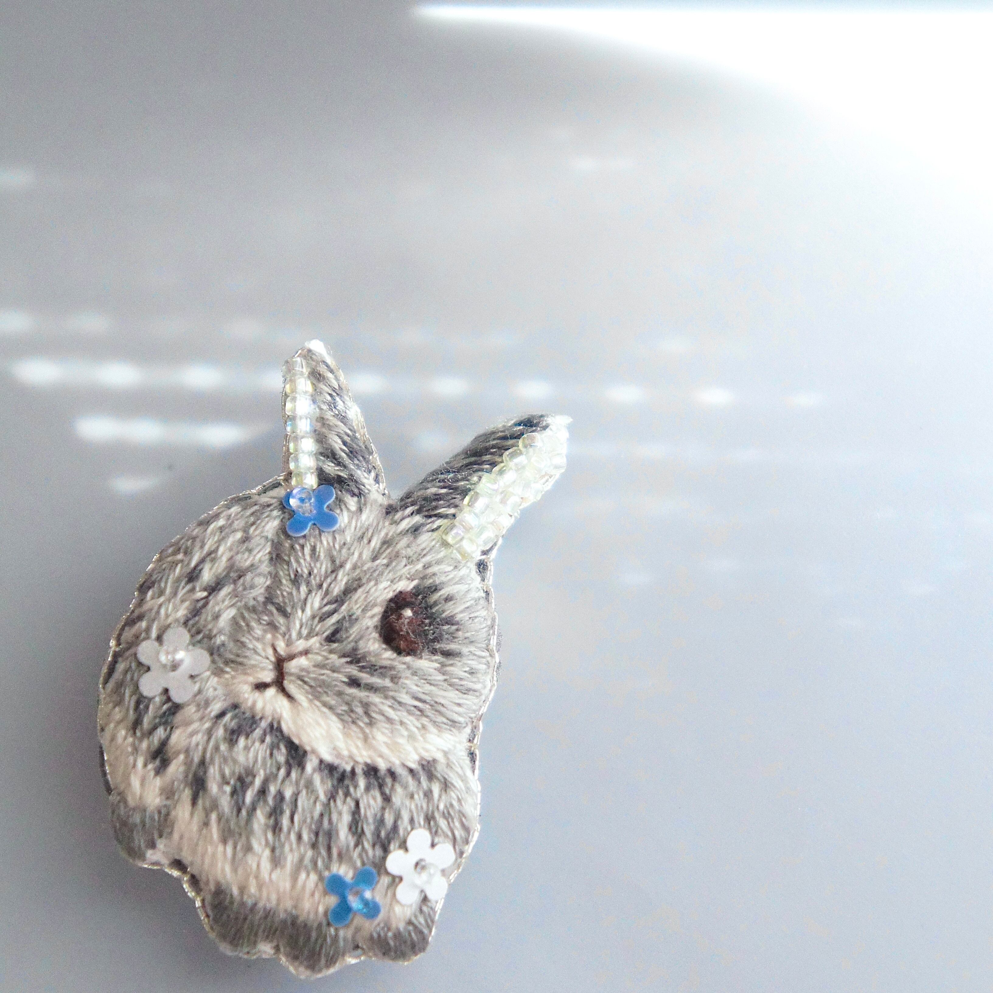 心に耳を澄ます、たち耳うさぎのブローチ【グレー】