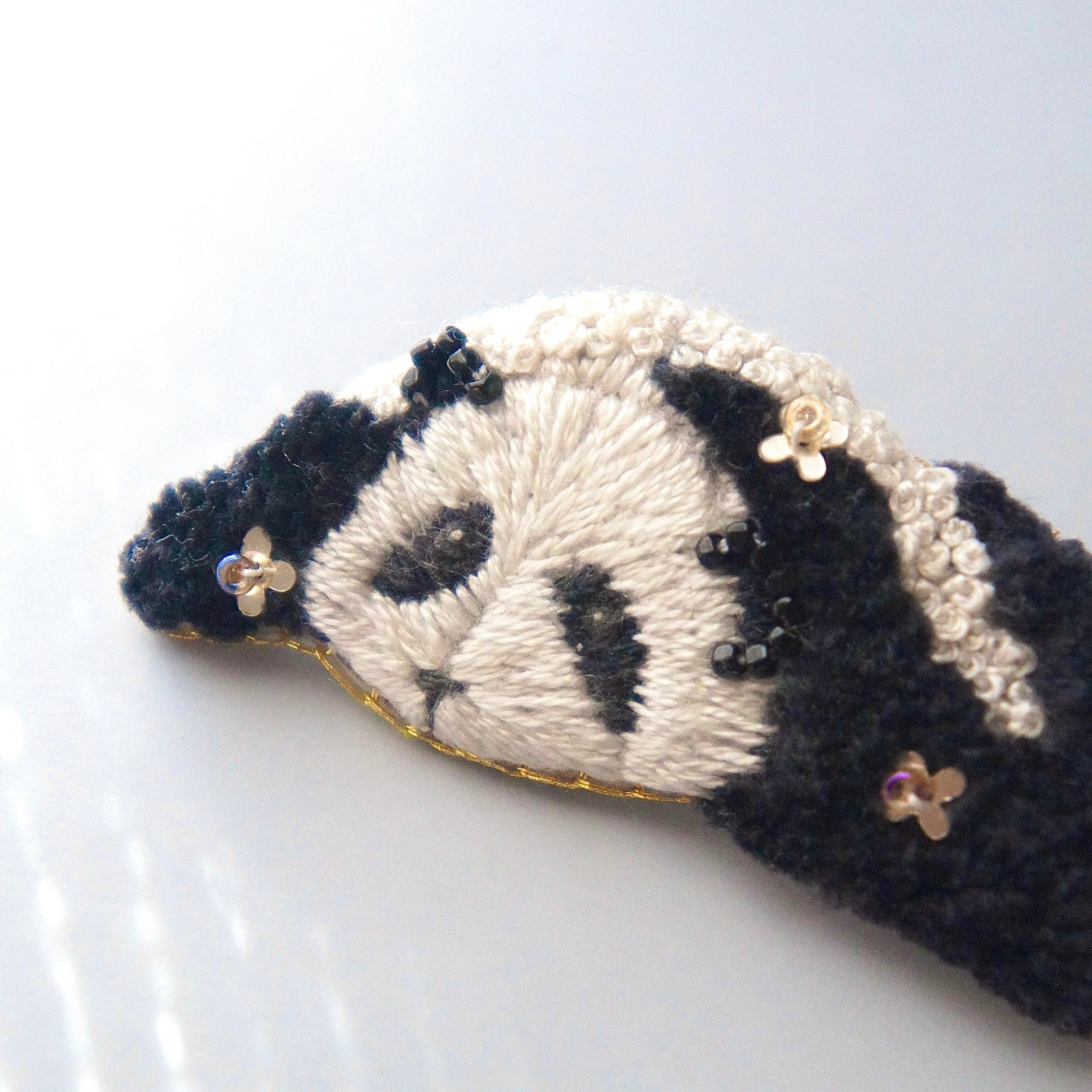 ちょっとひと休み。ぺたんパンダのブローチ【のんびり】