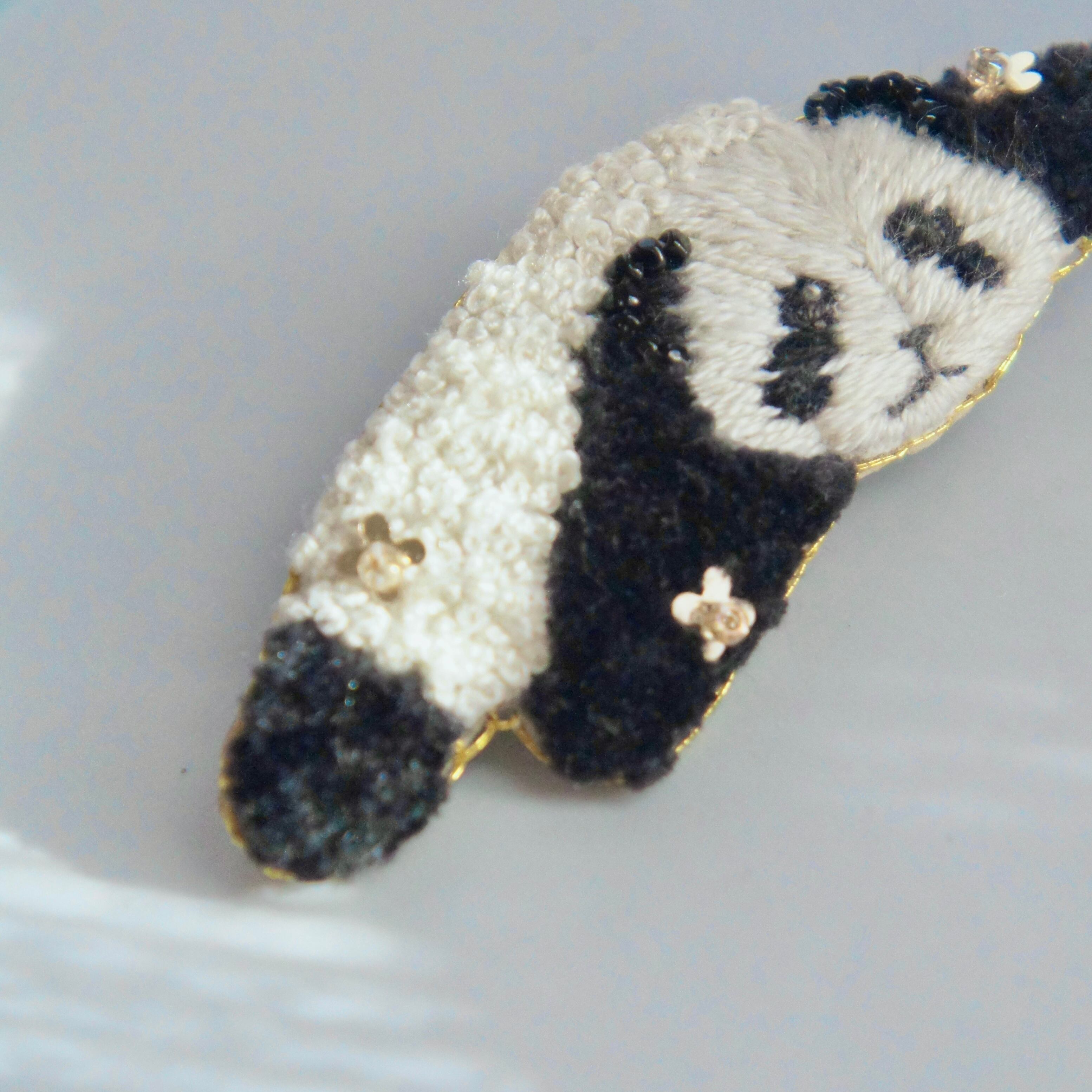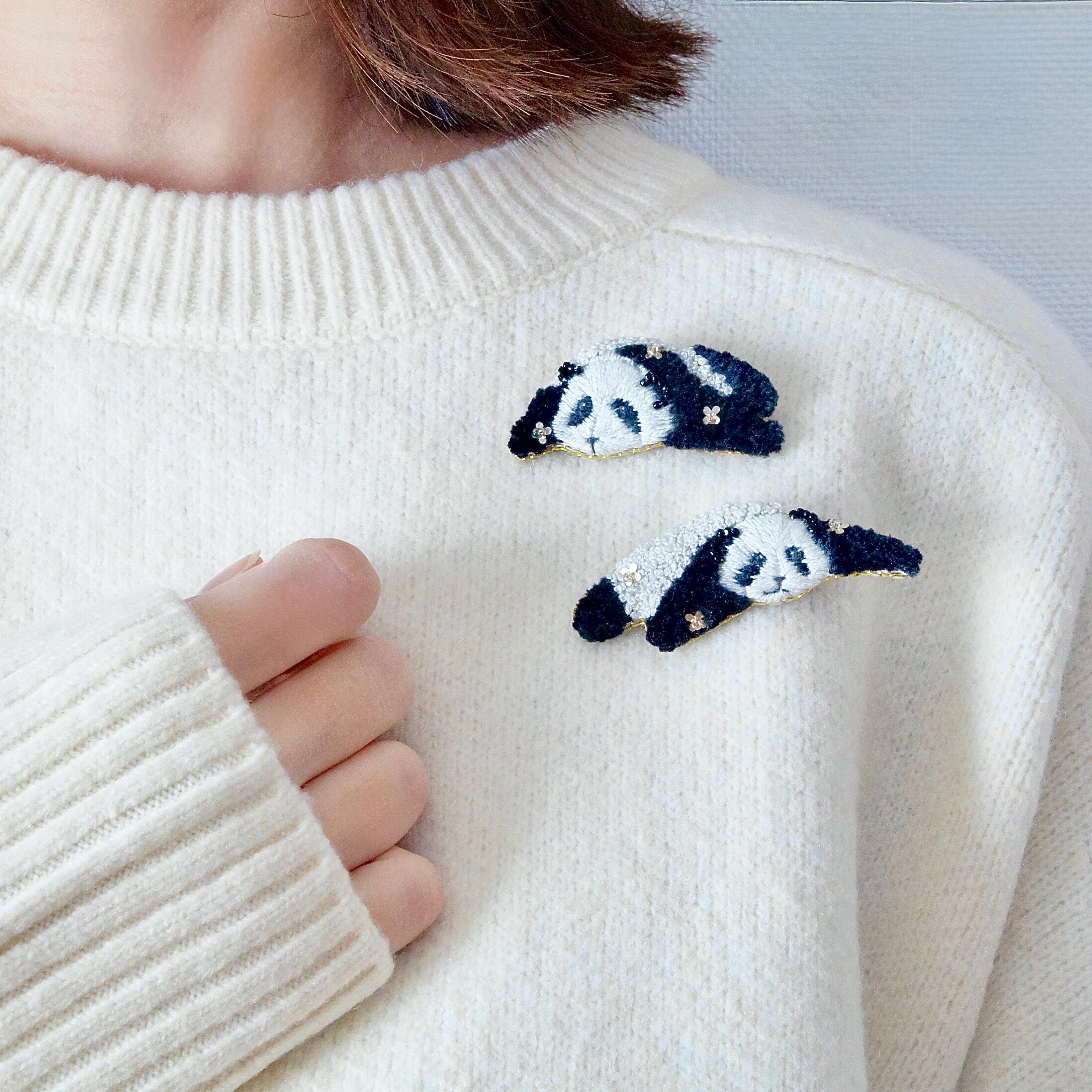 ちょっとひと休み。ぺたんパンダのブローチ【にっこり】