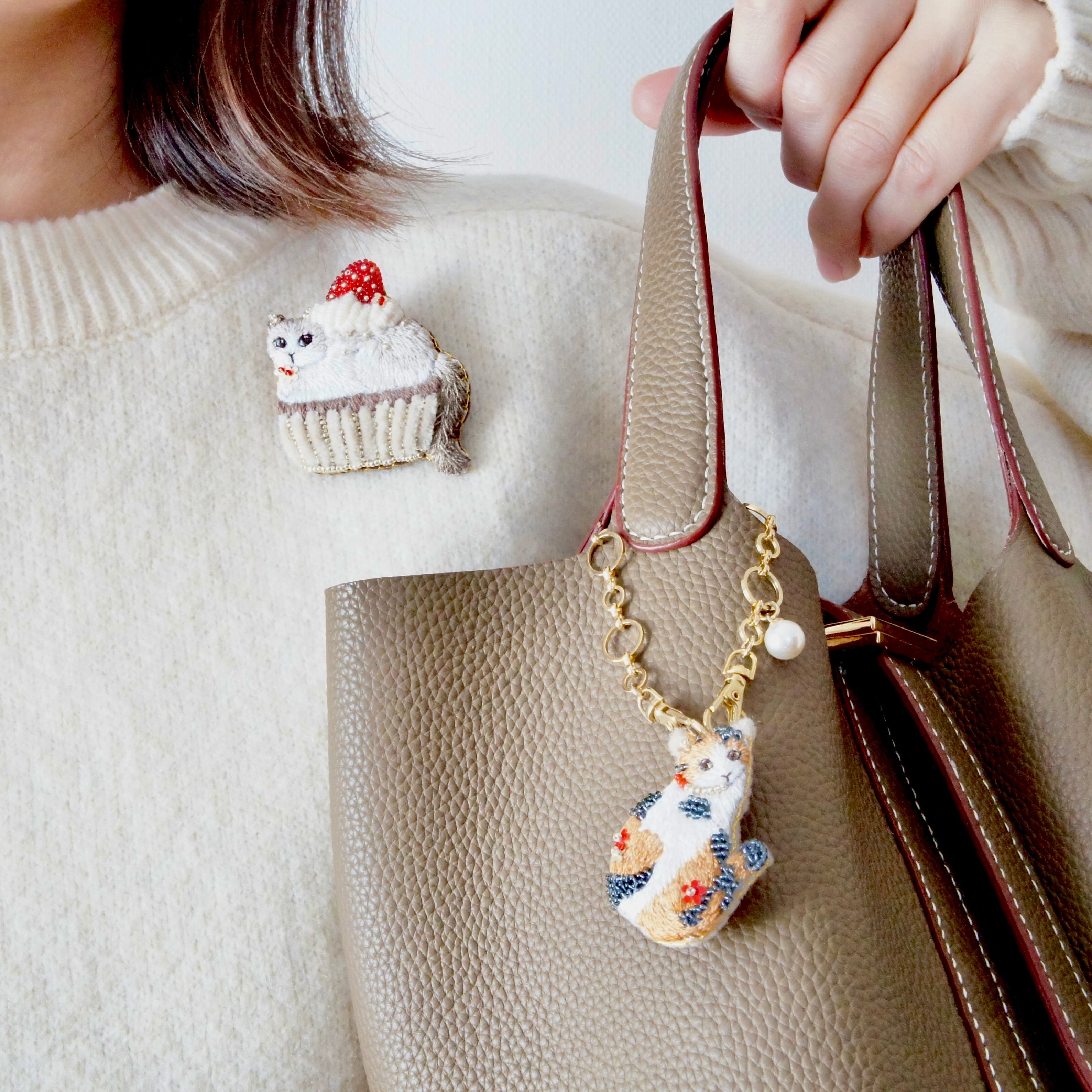 ・お仕立ては、バッグチャーム or ブローチ、またはどちらも付けた2way(+¥250)からお選びいただけます。