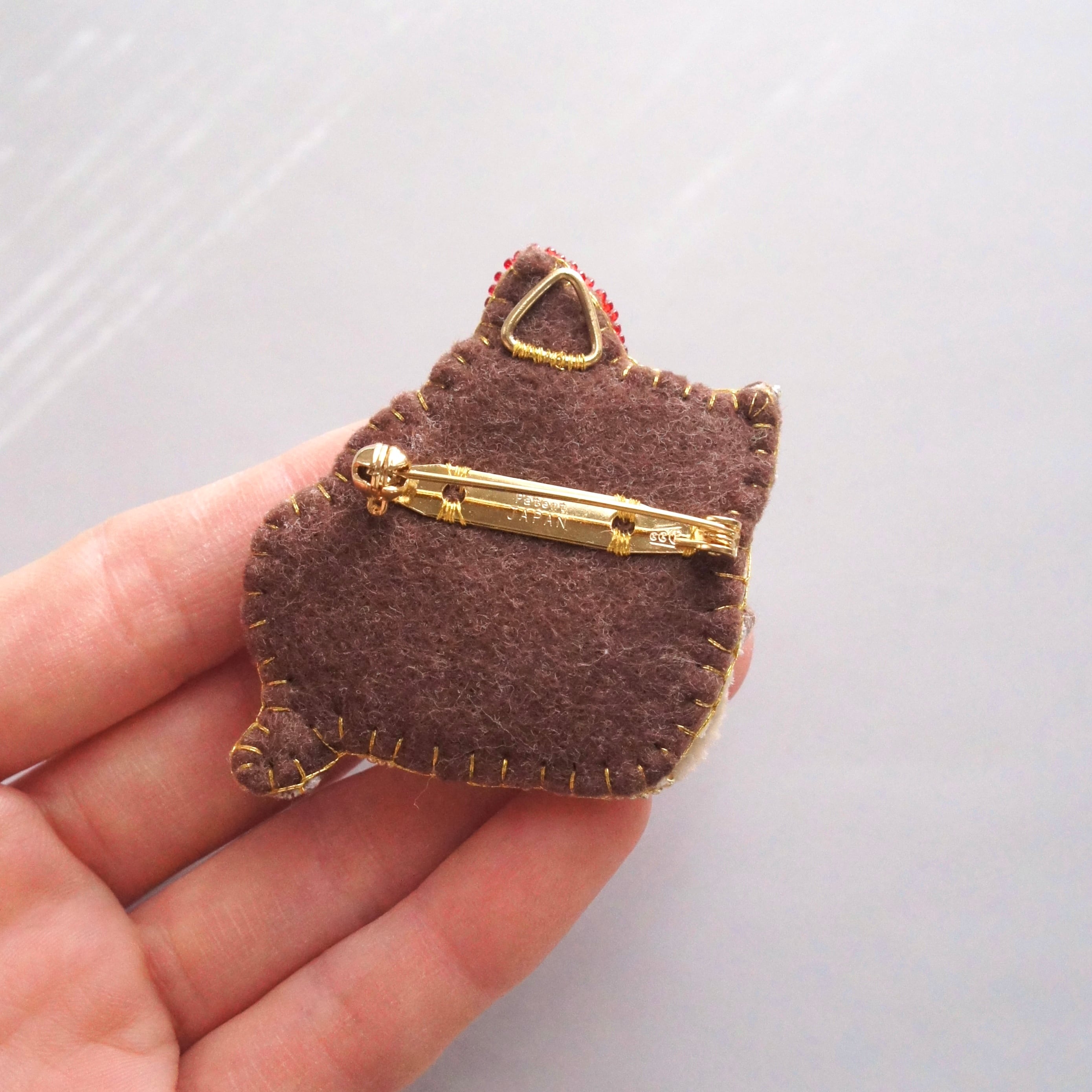 ・裏面は、肌触りが良く毛羽立ちにくい高級フェルトを使用しています。色は、都度仕入れができたものから作品に合わせて制作しており、写真とは異なる場合もあります。